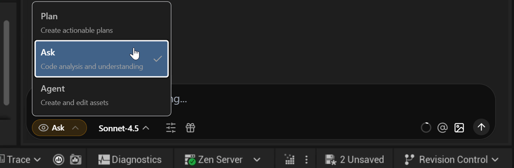 Aura has three distinct modes that’s good to be aware of: Plan, Ask and Agent mode.