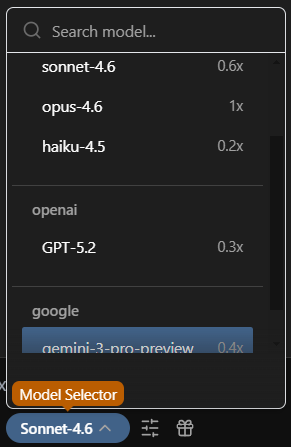 Relative cost estimates are displayed in the model selector panel.