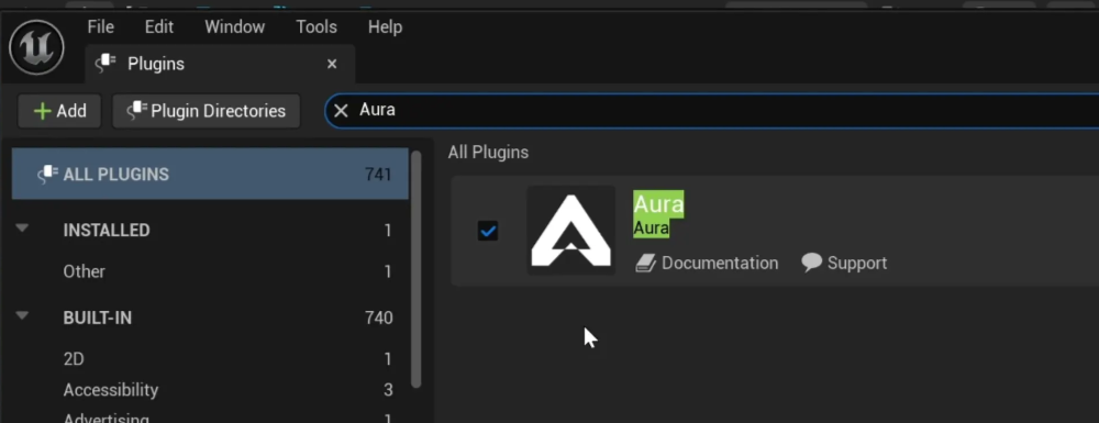 Search for “Aura” > Enable Aura > Restart the editor.