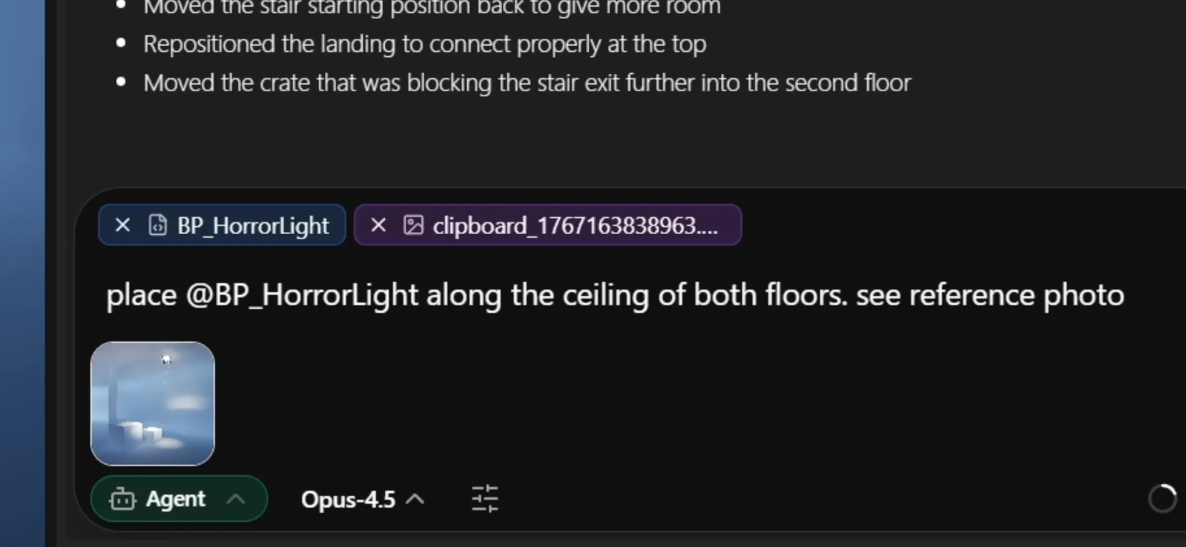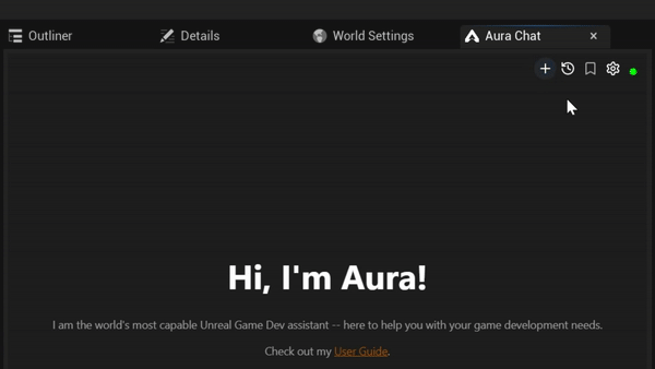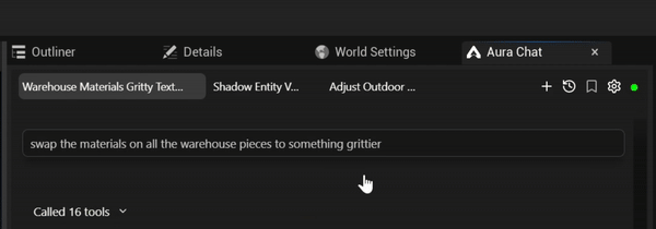 💡 You can run multiple prompts in parallel (up to ~4) allowing you to move onto other things. For example while Aura is creating a 3D model of jump pad in one thread, you can chat about a blueprint plan for the jump pad in another thread.
