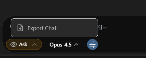 When debugging issues with the Aura team, chat exports help the team investigate issues and where Aura may have messed up. You can export your chat by clicking the Tools button at the bottom > Export Chat and then send it to the Aura team.