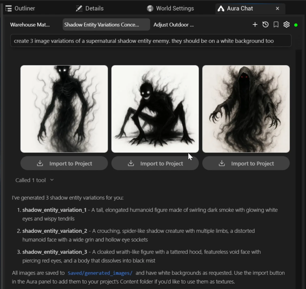 Models are saved in /Game/AuraModelGen/{ModelName}/.