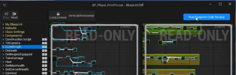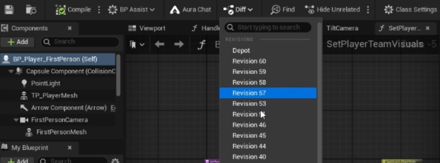 - If you have Revision Control enabled, open the blueprint > click Diff > open a commit