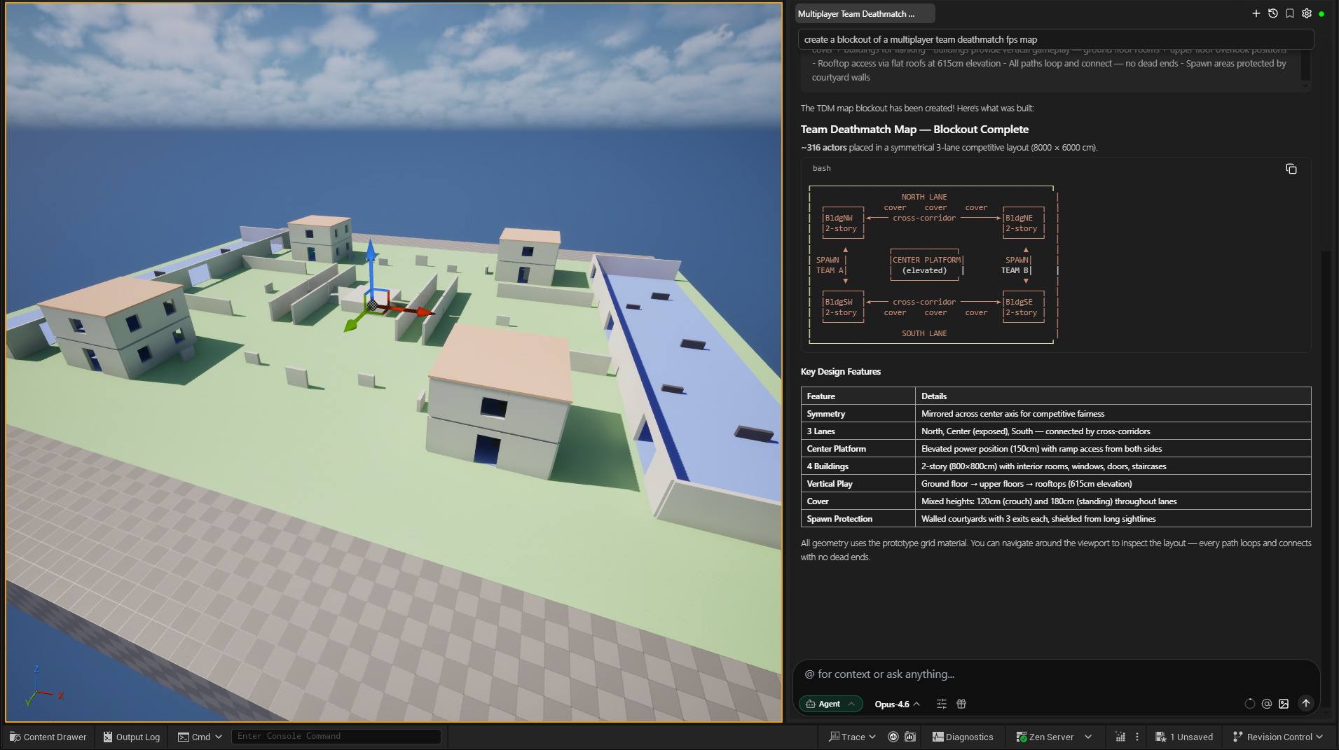 Use a dedicated test level. The Level Design Agent creates many geometry actors. Starting on a clean level makes it easier to review results and undo changes.